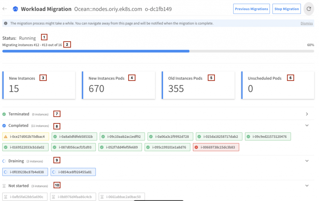 - The instances that have completed the migration successfully.